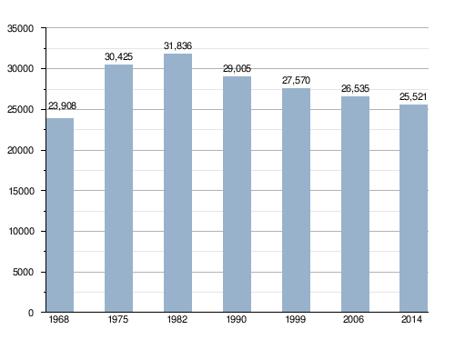 Met 25.521 inwoners heeft Montbéliard een bevolkingsdichtheid van 1.700 inwoners/km2 .
